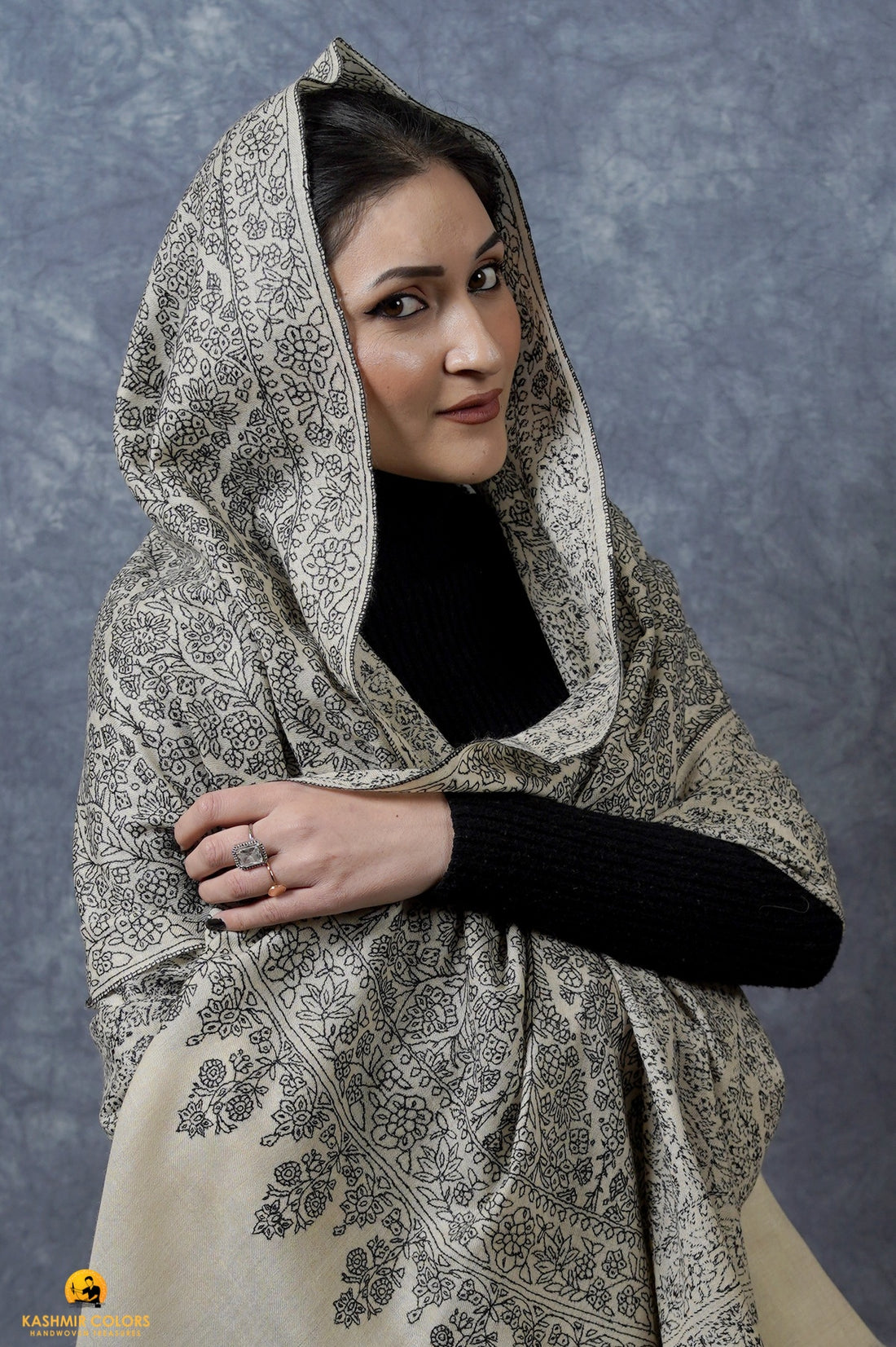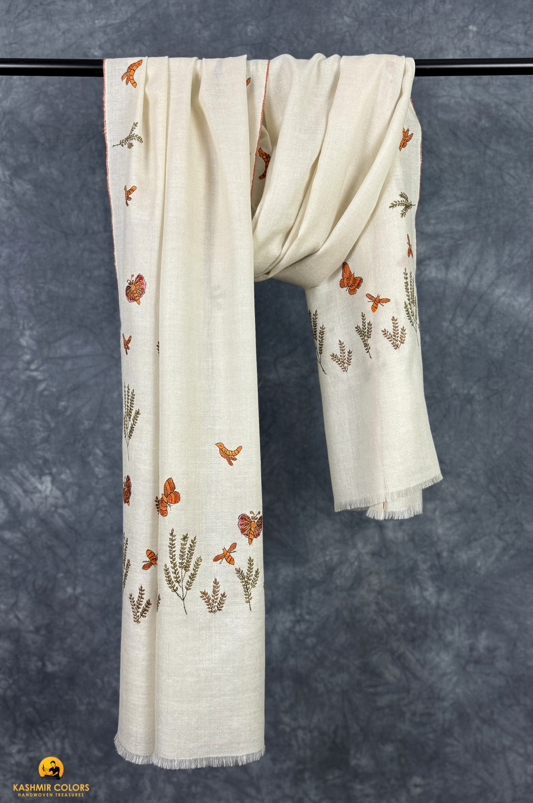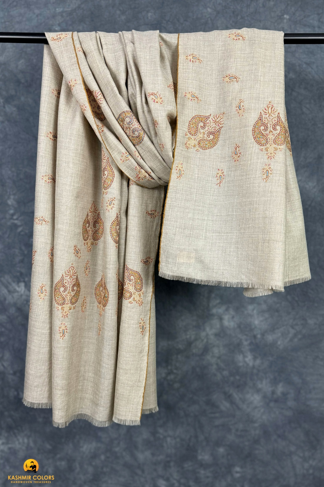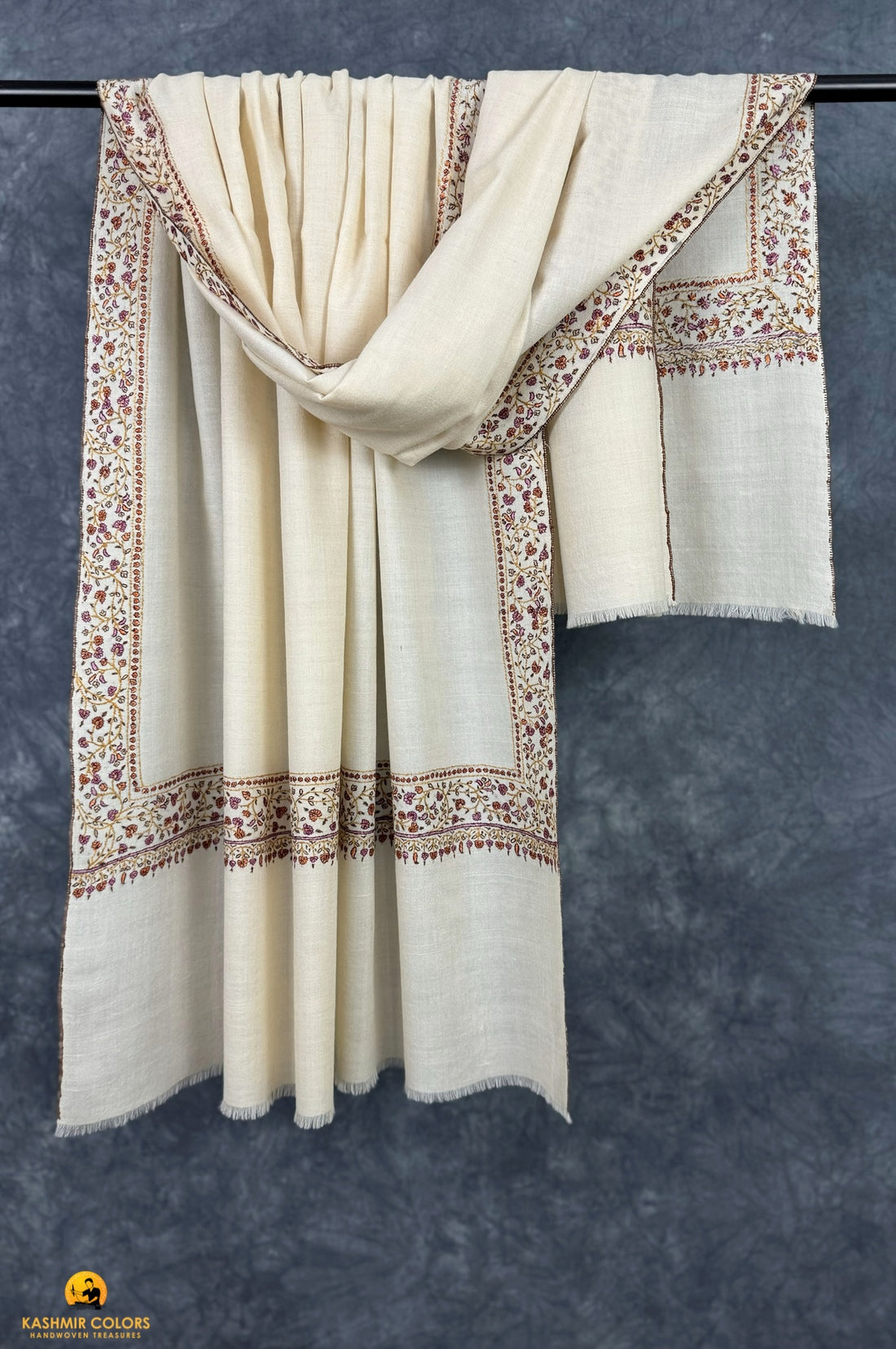 Sozni Jaaldar Natural Hand Embroidered Pashmina Stole
