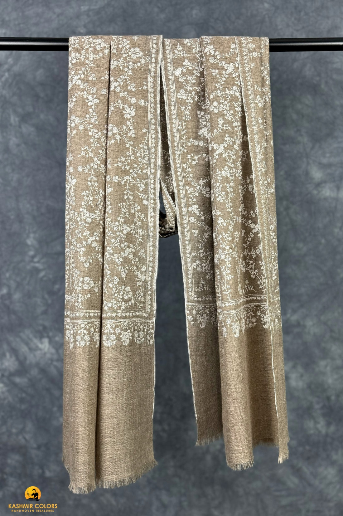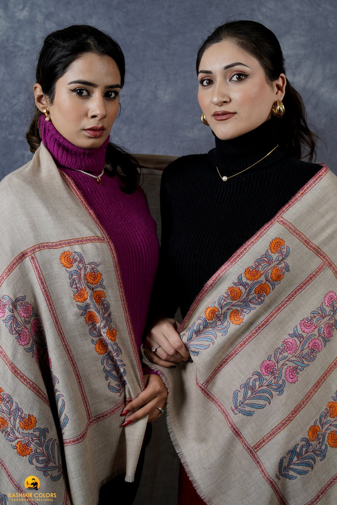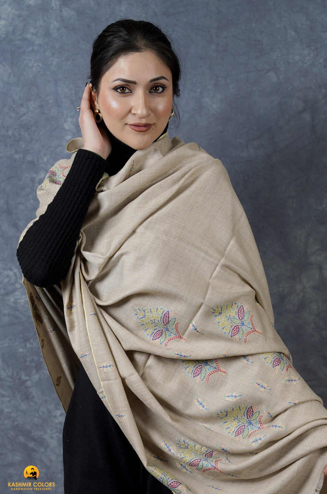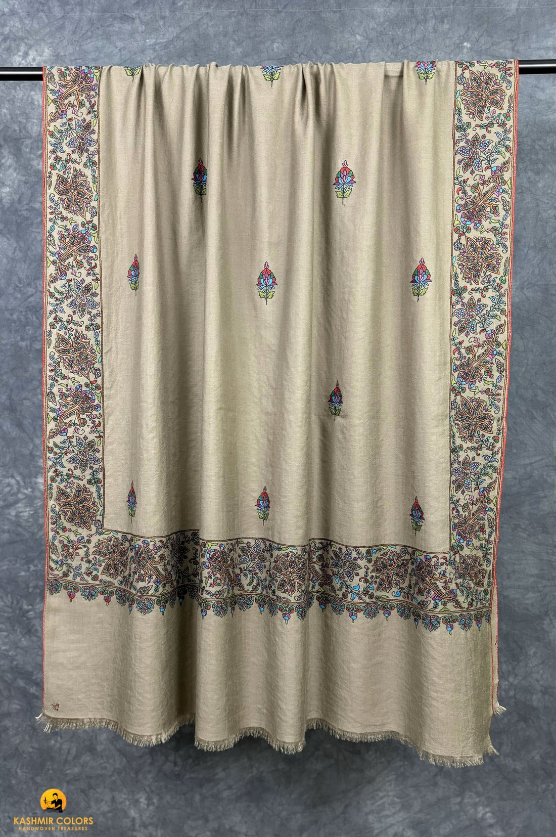 Sozni Jaaldar Natural Hand Embroidered Pashmina Stole