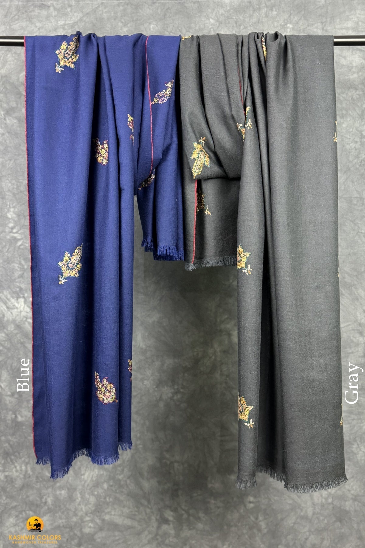 Blue Booti Daar Hand Embroidered Pashmina Stole
