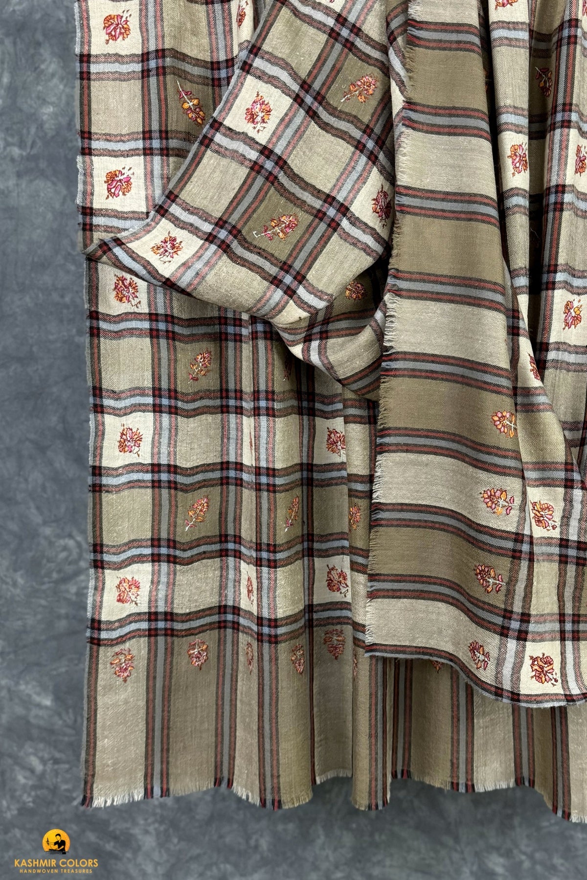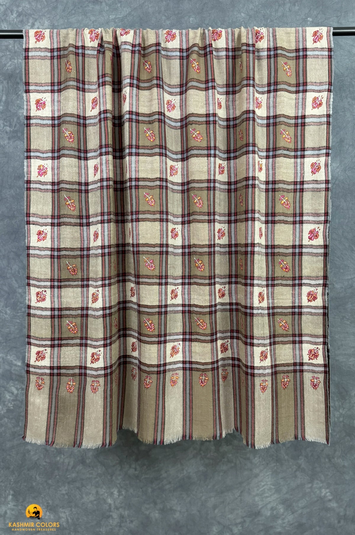 Check Boteh Hand Embroidered Cashmere Shawl