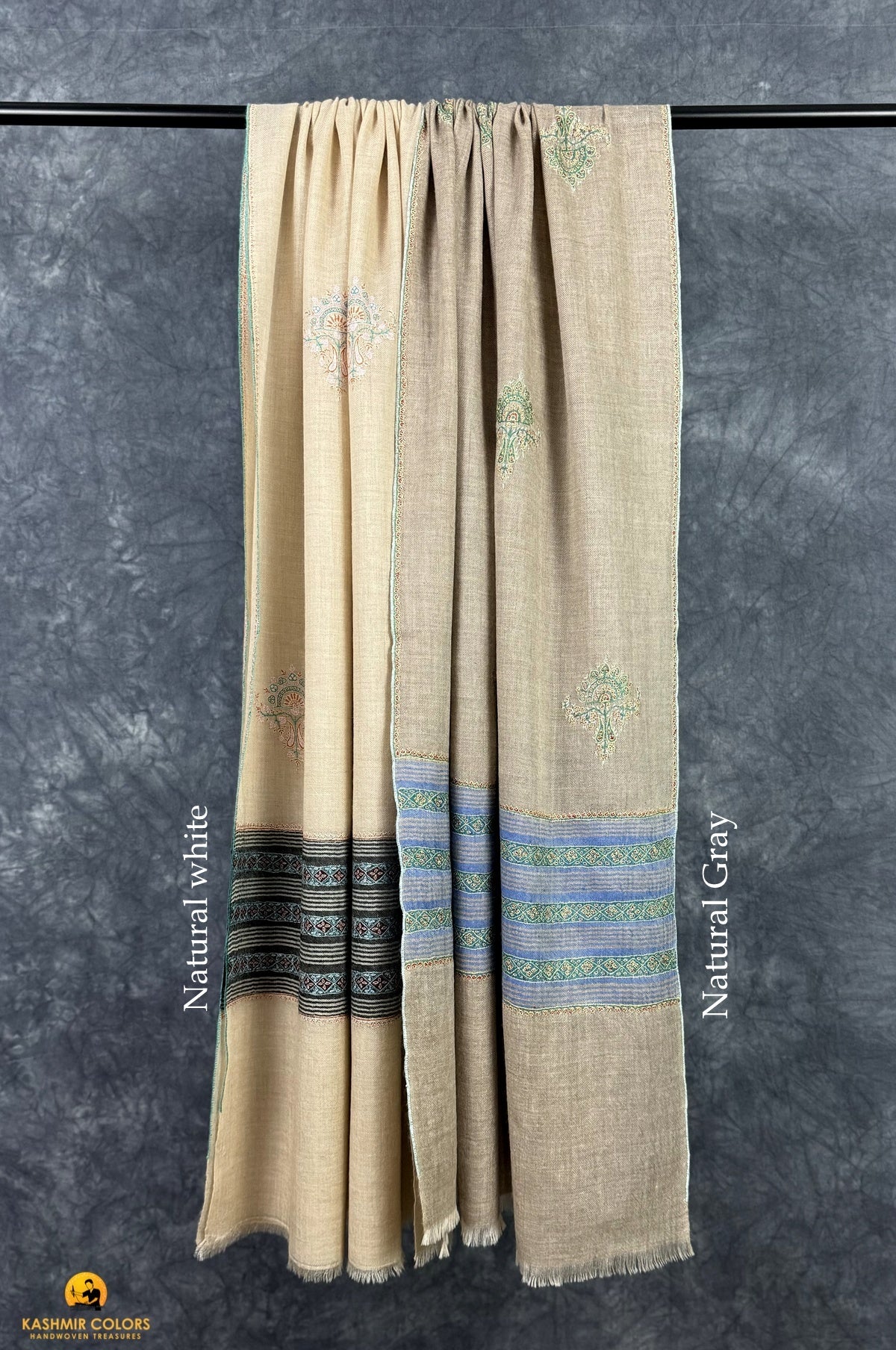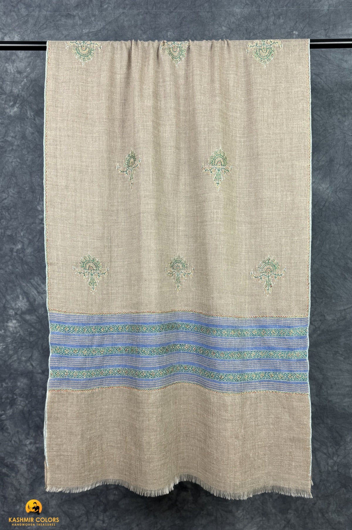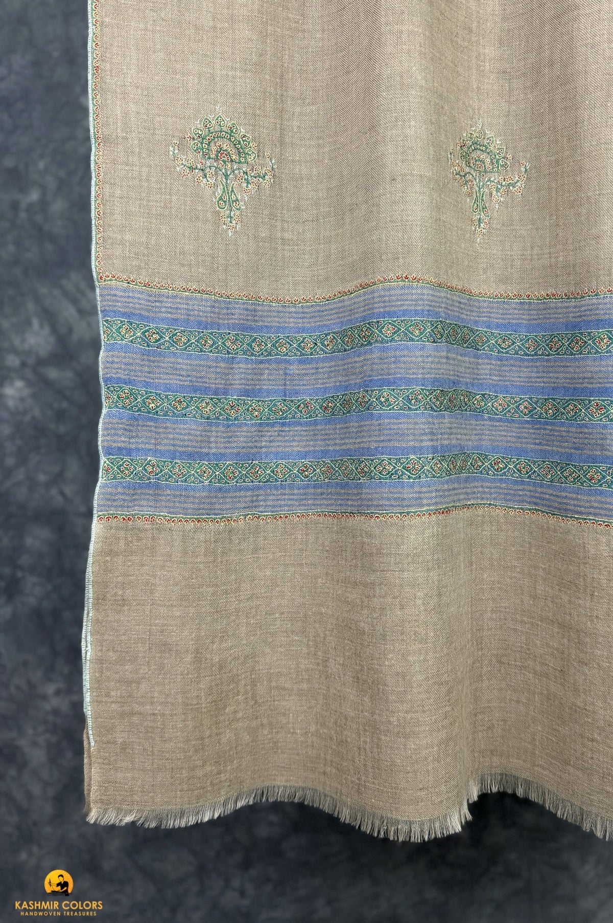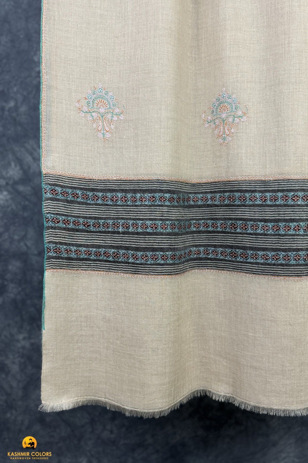 Dussa Charcoal Stripes Natural Hand Embroidered Pashmina Stole