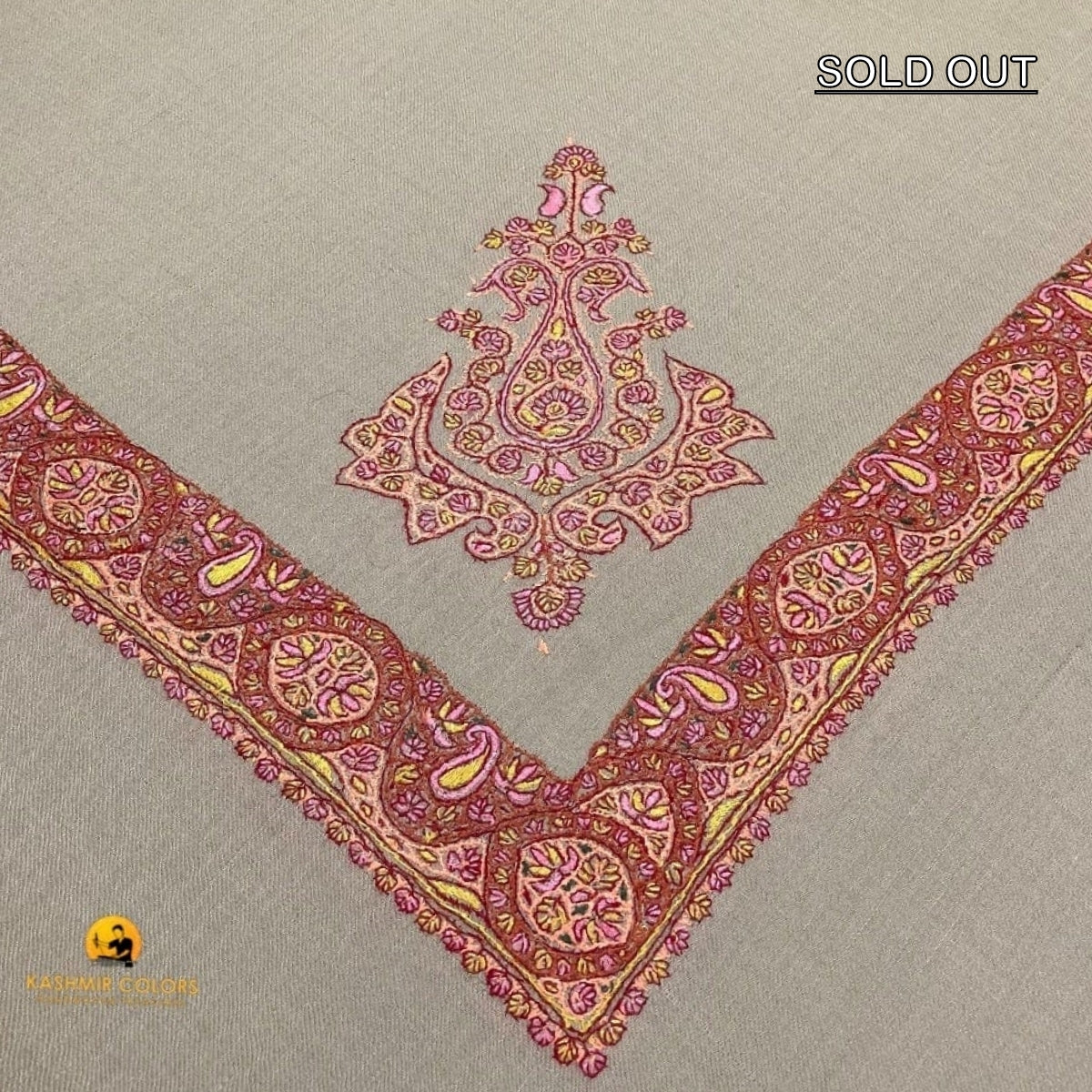 Embroidered Men's Ghutra Natural Brown Pure Cashmere Pashmina