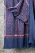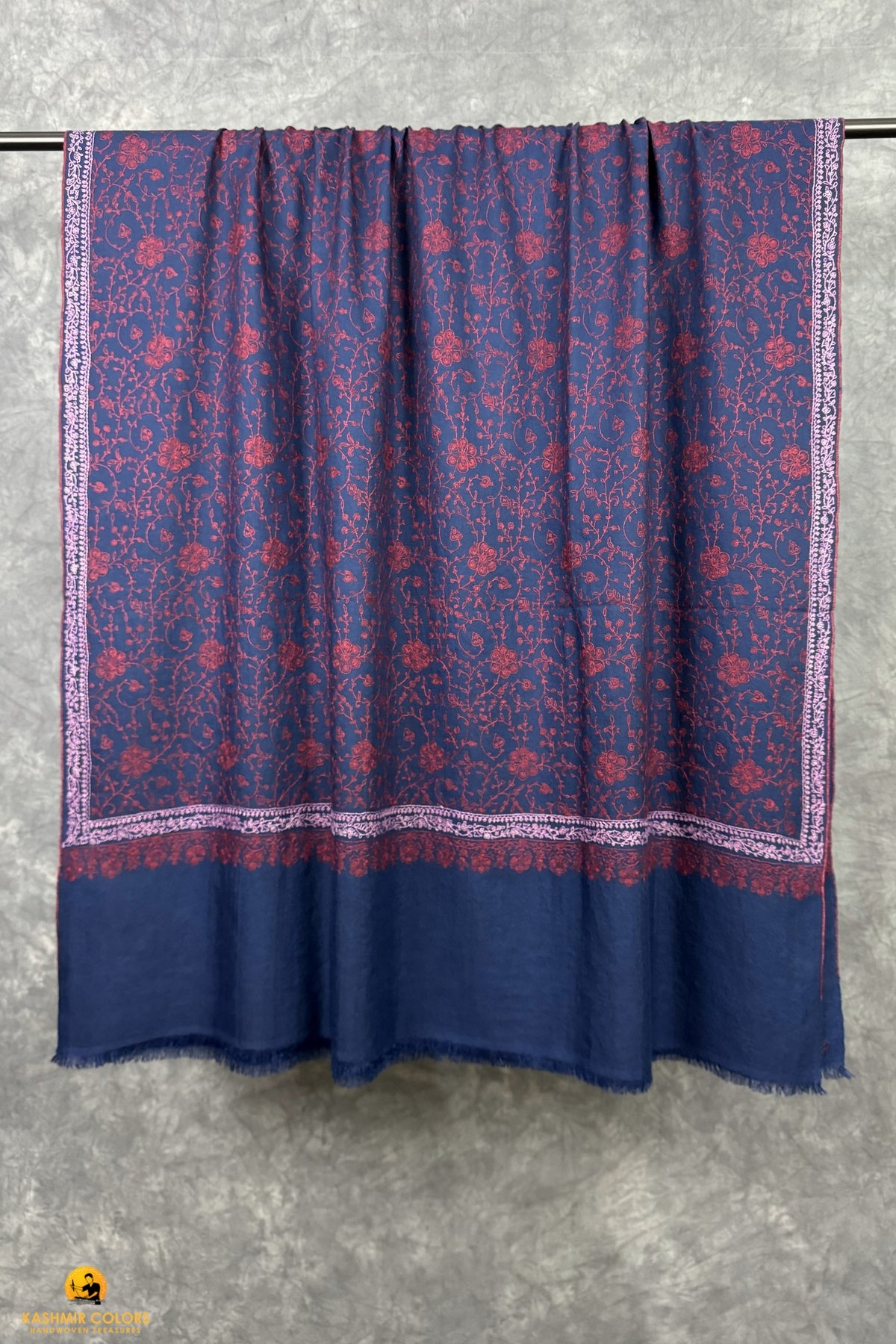 Jaaldar Blue with Red and Pink Hand Embroidered Cashmere Shawl