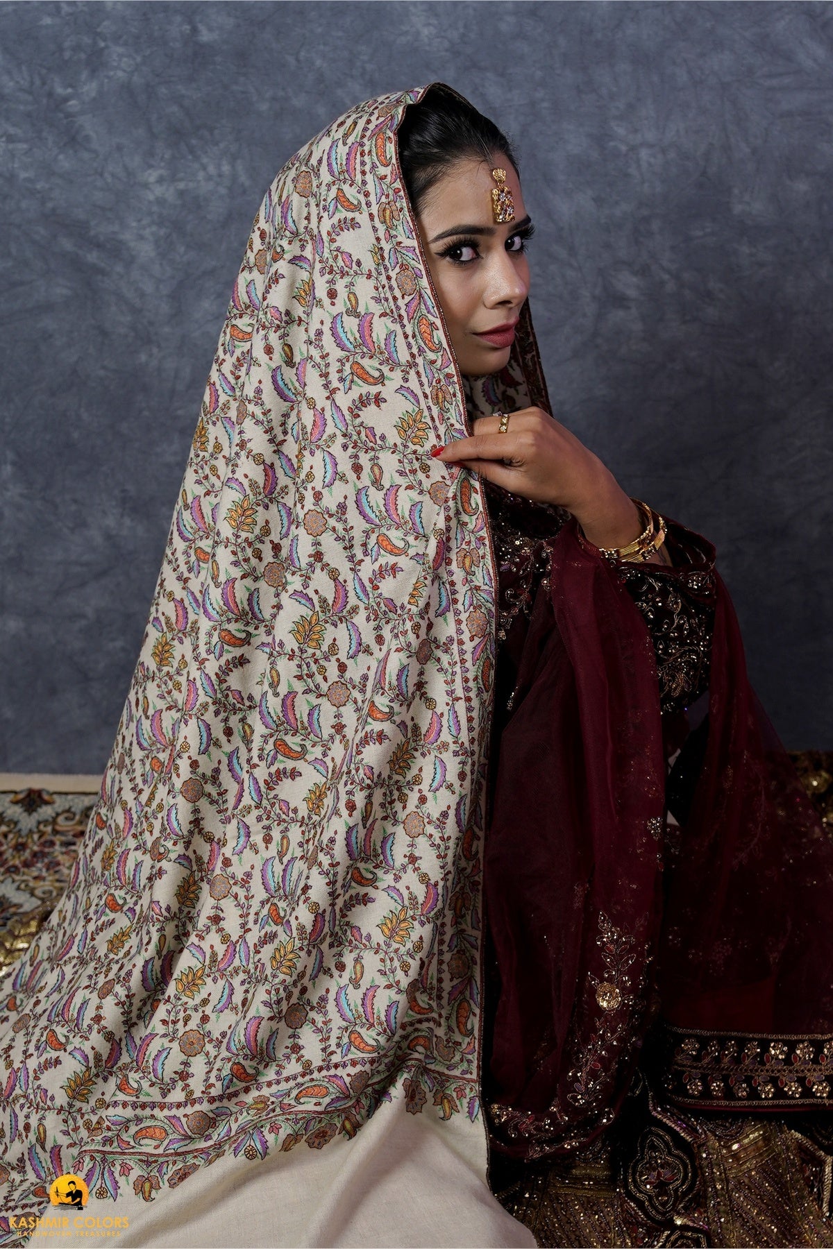 Jamawar Shawl Hand Embroidered Pure Cashmere Pashmina