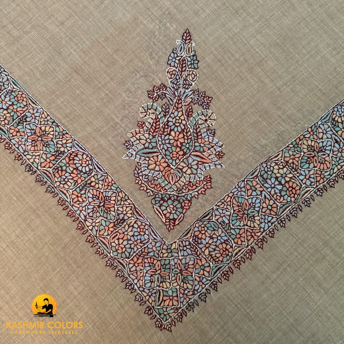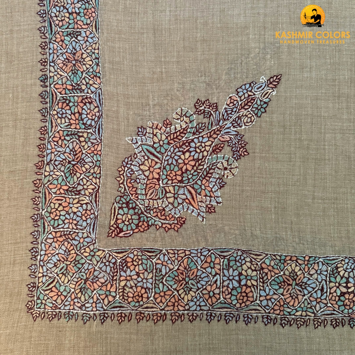 Natural Grey Hand Embroidered Cashmere Ghutra Square Scarf