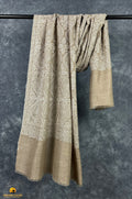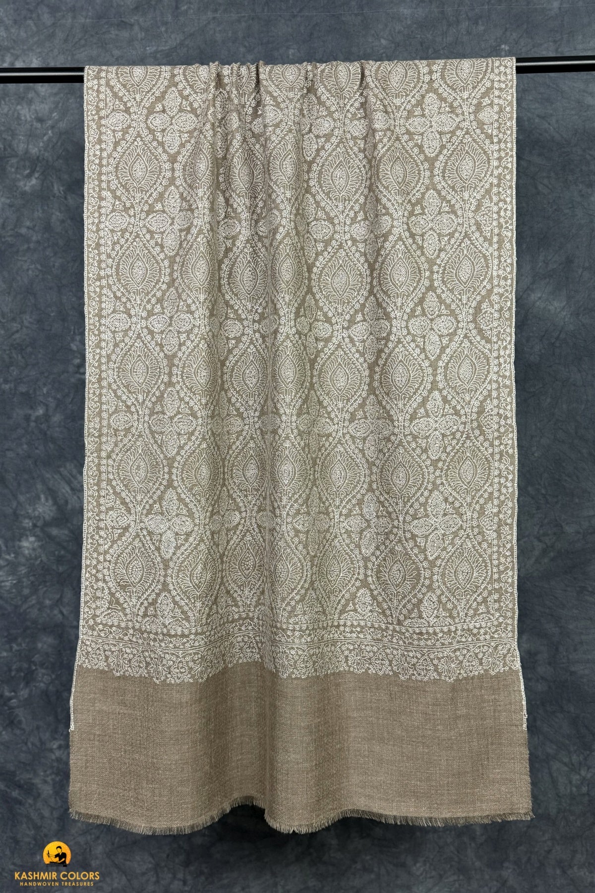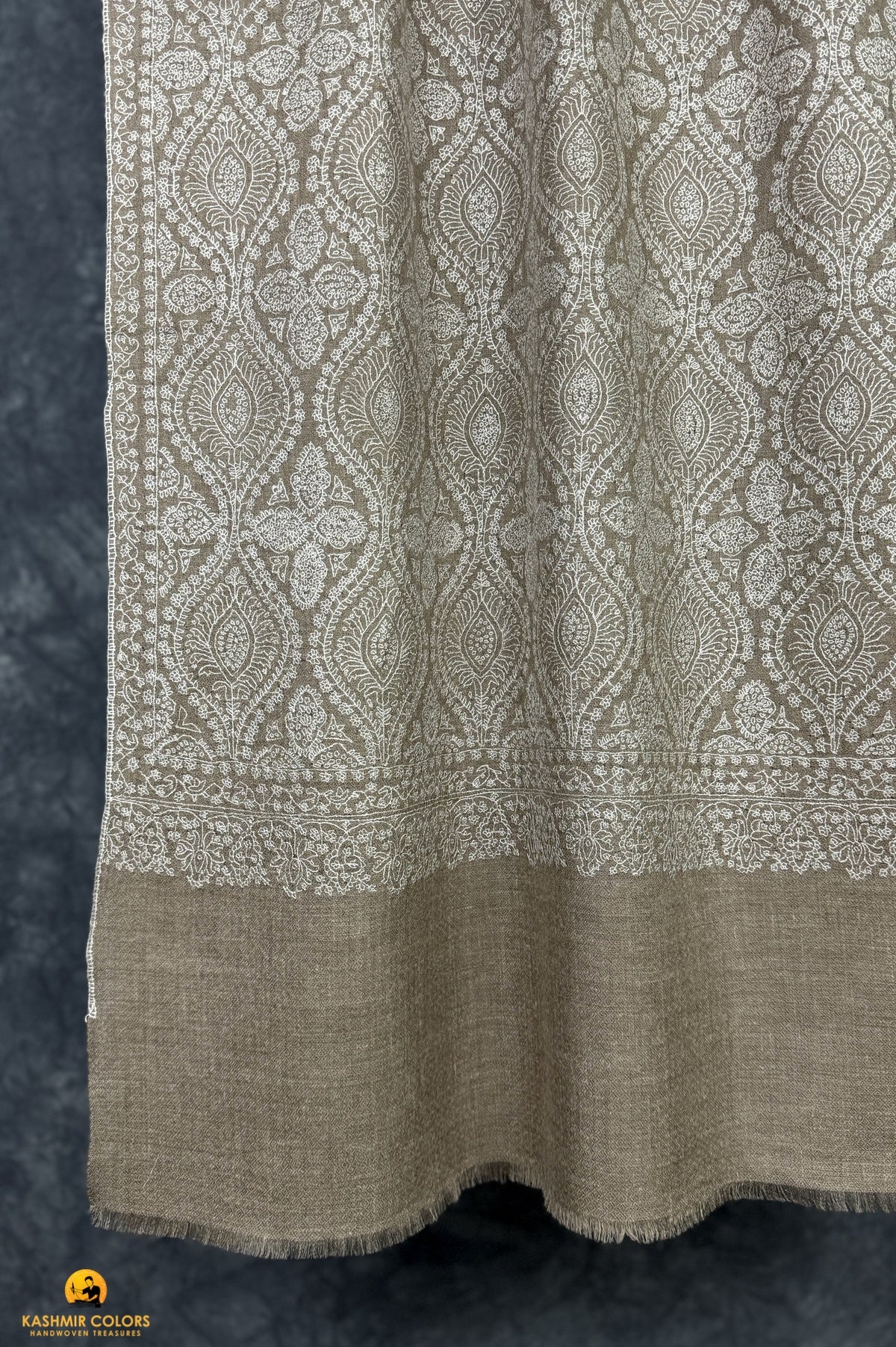 Natural Grey Outline Jamavar Hand Embroidered Pashmina Stole