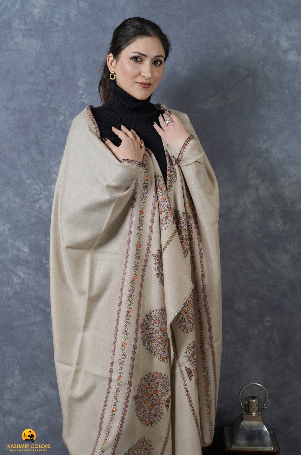 Noora's Vase Hand Embroidered Shawl