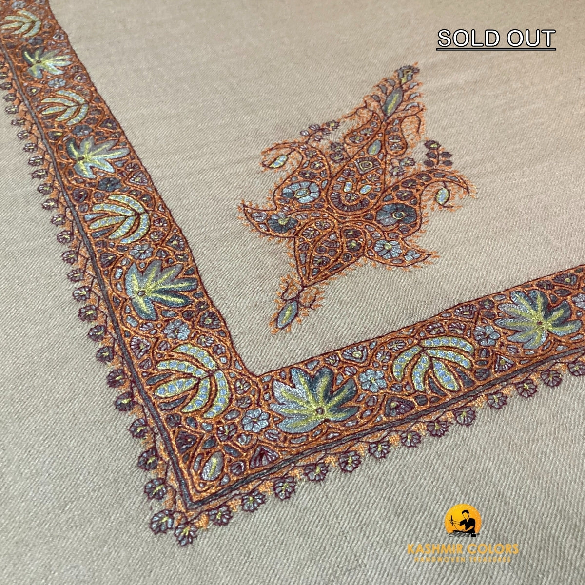 Men's Natural color Hand Embroidered Ghutra Pure Cashmere