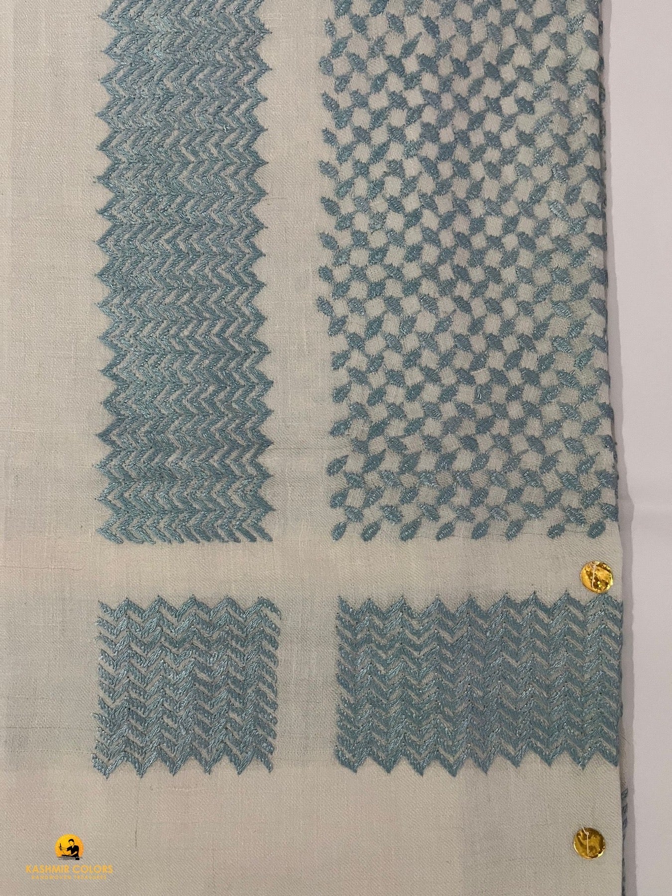 Ghutra/Square scard Natural whue & sky blue Hand Embroidered