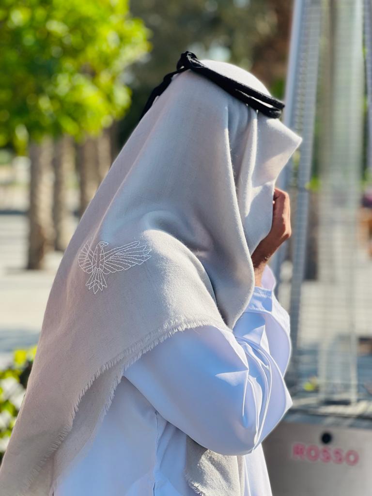 Pure Pashmina Hand Embroidered Falcon Ghutra Square Scarf