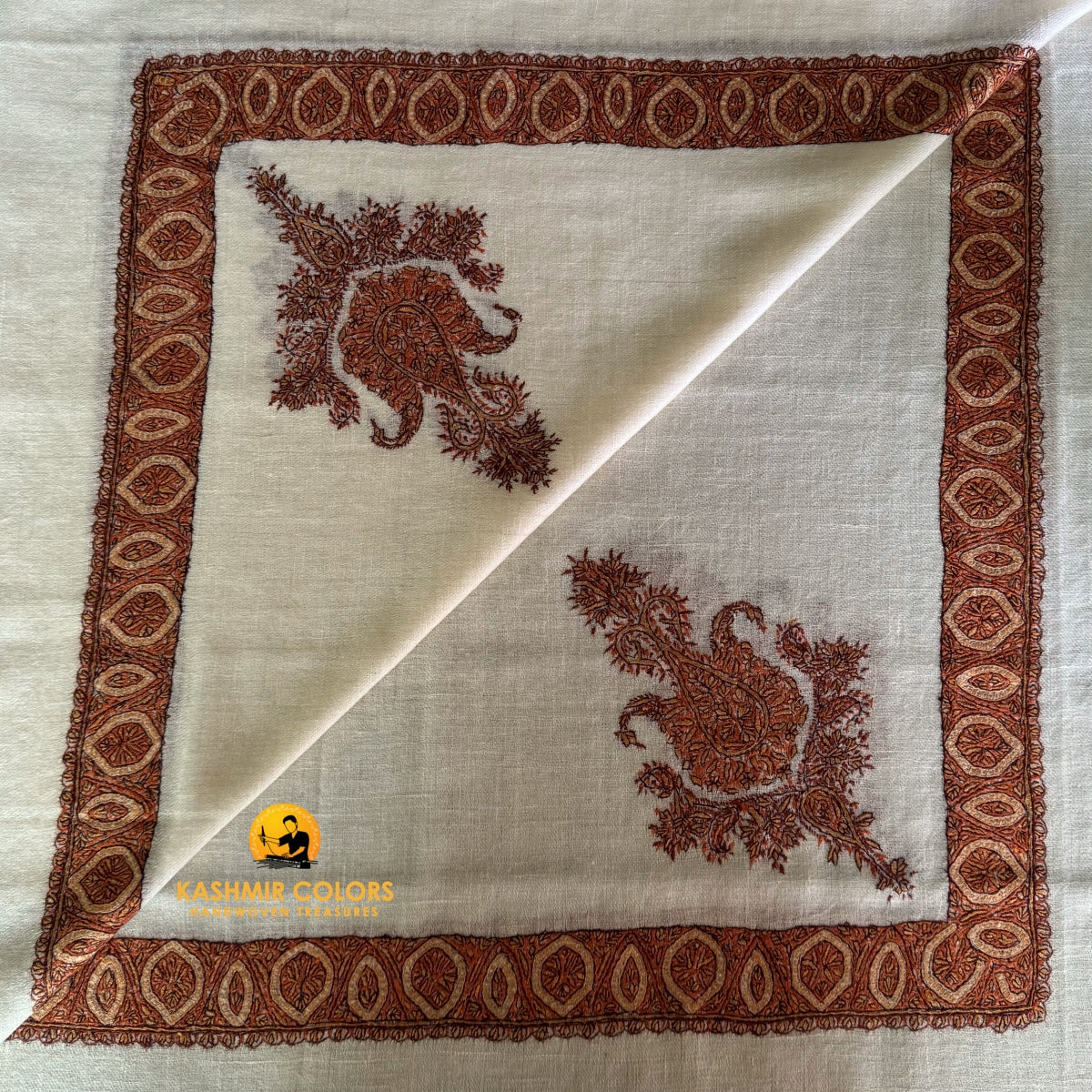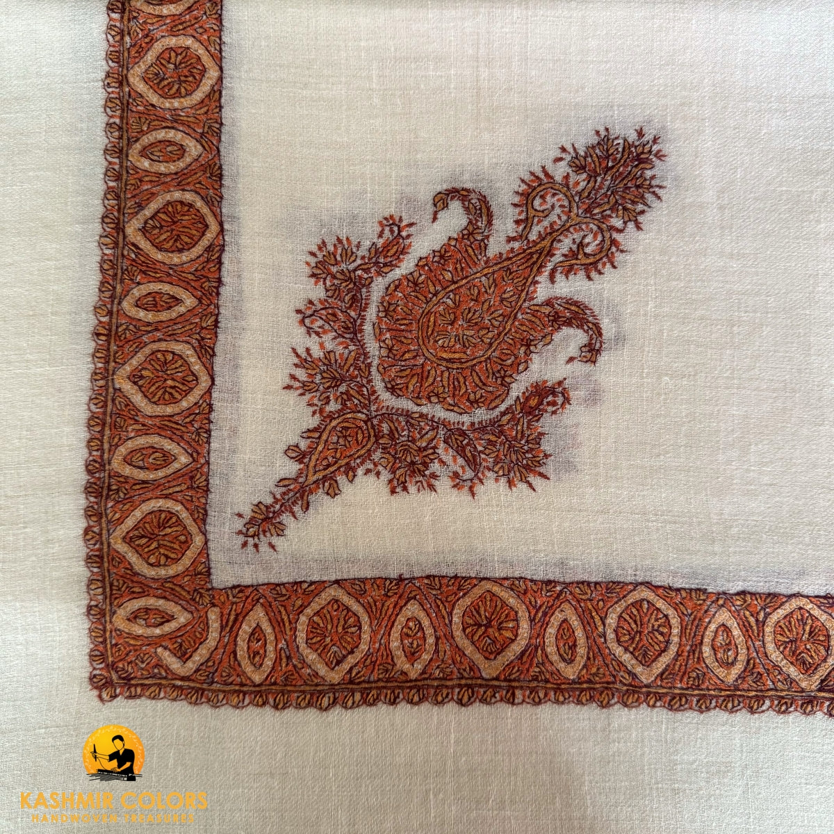 Pure Pashmina Hand Embroidered Ghutra Natural Ivory Square Scarf