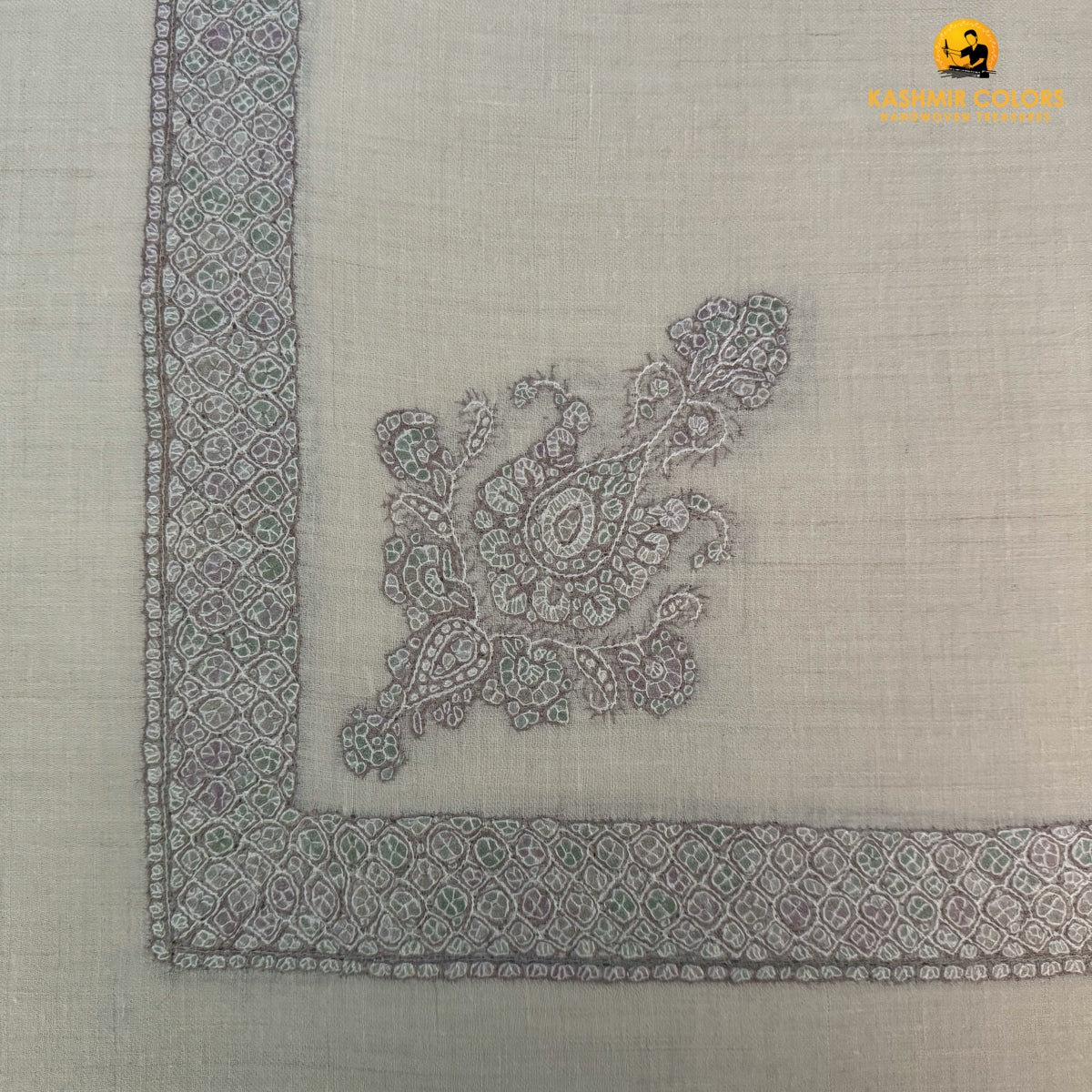 Pure Pashmina Ivory Pastels Hand Embroidered Ghutra Square Scarf
