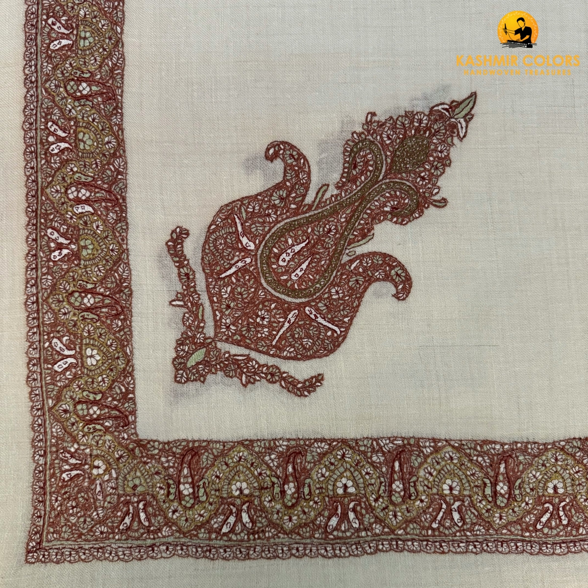 Pure Pashmina Paisley Hand Embroidered Ghutra Square Scarf
