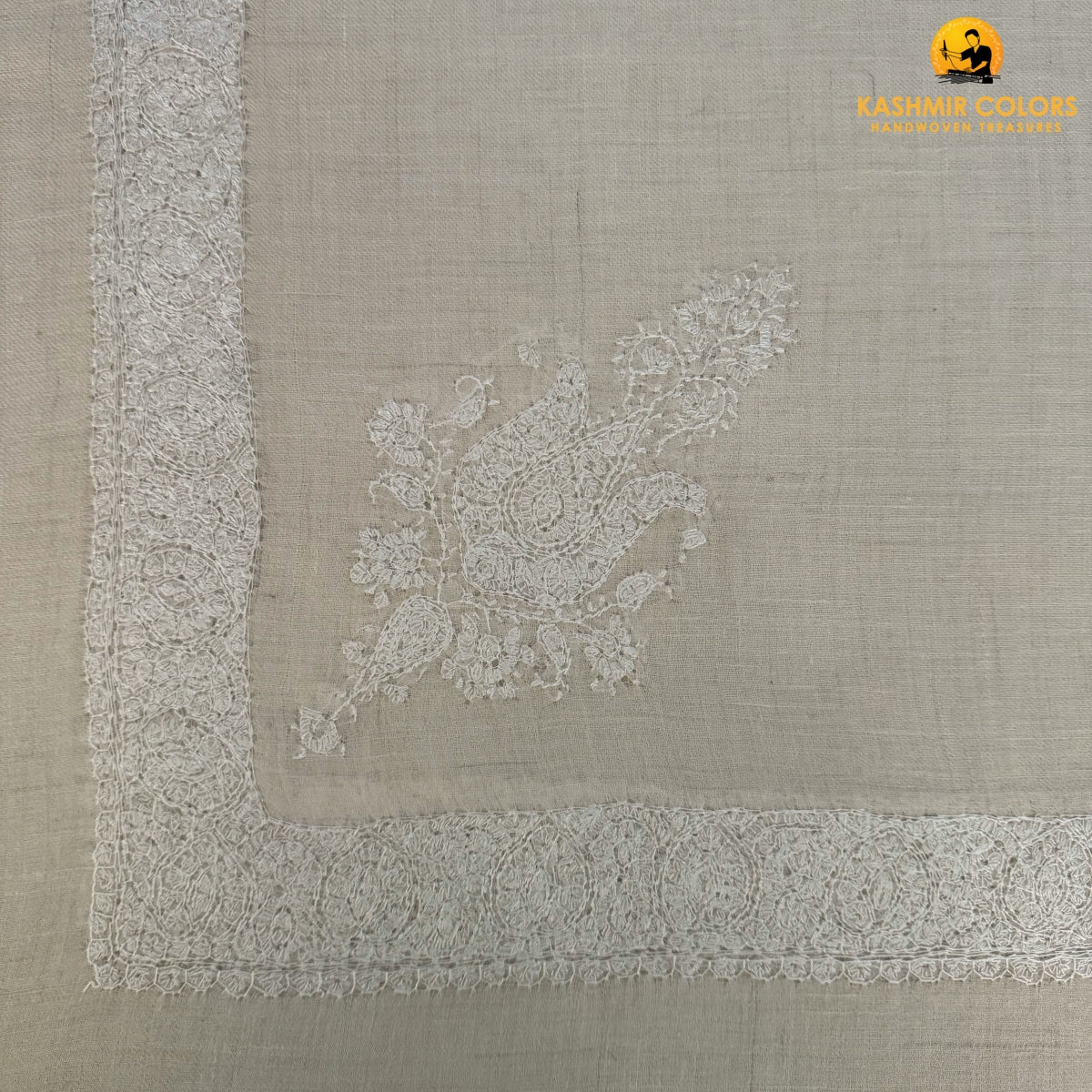 Pure Pashmina Tone on Tone Hand Embroidered Ghutra Square Scarf