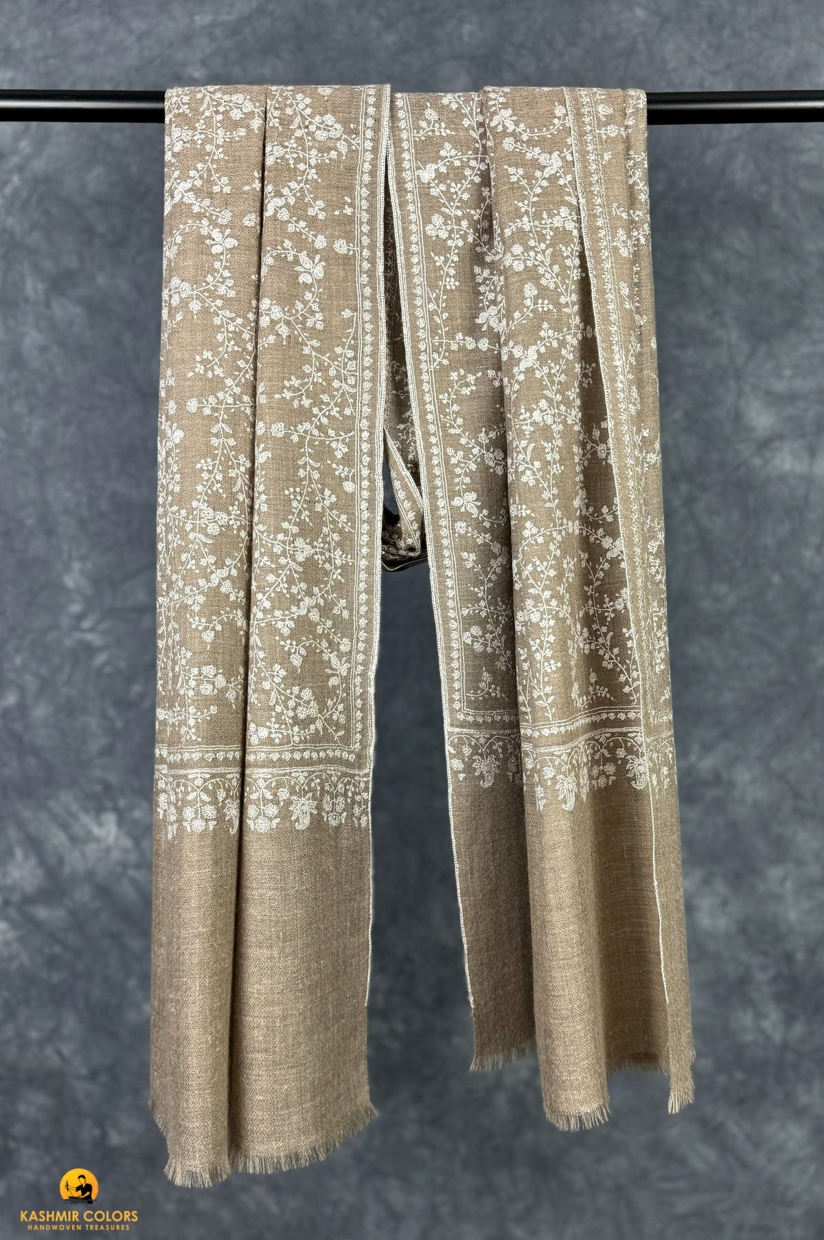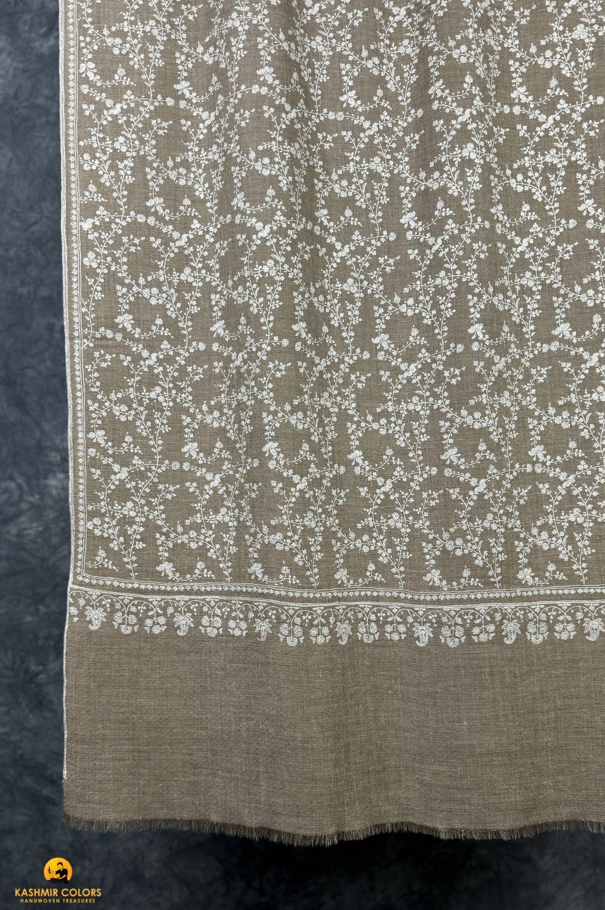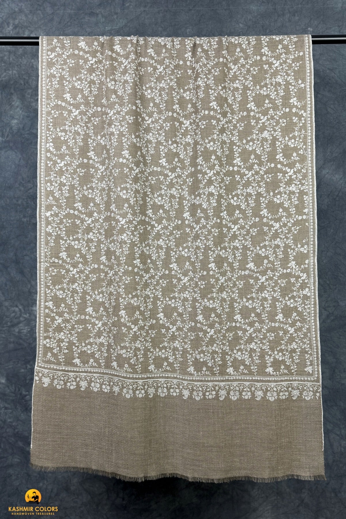Sozni Natural Hand Embroidered jaalidar Pashmina Stole
